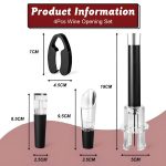 Táto 4-v-1 sada obsahuje otvárač s pumpou na vzduch, orezávač fólie, prevzdušňovač a vákuovú zátku pre dokonalý zážitok z vína.