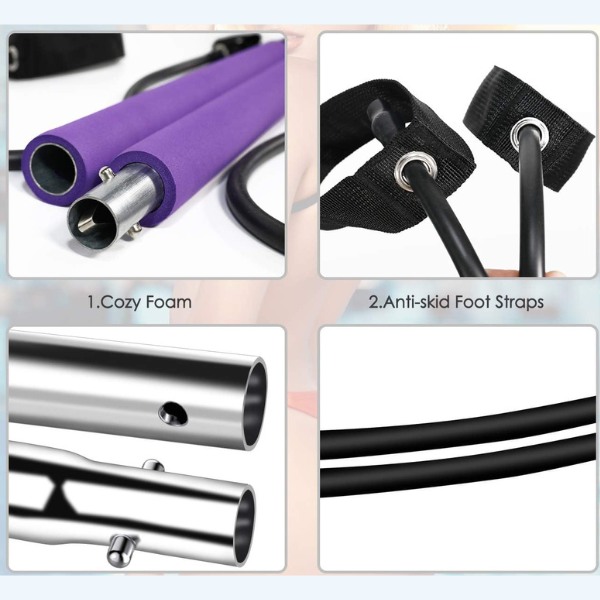 Pilates Bar umožňuje cvičenie celého tela, ktoré je zamerané na ruky, nohy a jadro. Vykonávajte drepy, strečingy a pohyby v hornej časti tela doma bez potreby veľkých strojov alebo závaží.