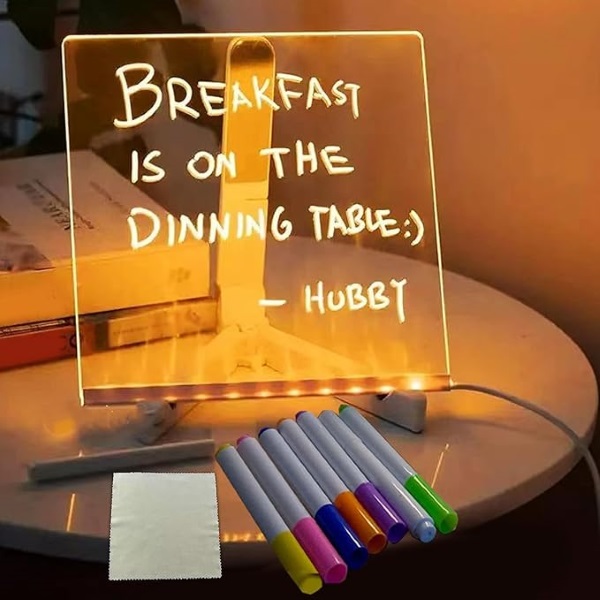 Neviete nájsť spôsob, ako zanechať láskyplné odkazy pre svoju rodinu? Naše svietiace tabuľky vám umožnia zanechať láskyplné odkazy pre vaše deti alebo blízkych, ale ponúkajú aj možnosť písať si poznámky a vytvárať kresby. Či už ide o pripomenutie, aby mali skvelý deň, alebo o roztomilú čmáranicu na zlepšenie nálady, tieto tabuľky poskytujú kreatívny a interaktívny spôsob komunikácie a vyjadrenia náklonnosti. Nechajte svoju lásku zažiariť s našimi svietiacimi tabuľkami s odkazmi!