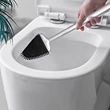 Čistiaca WC kefa sa nikdy neopotrebuje ani nezmení svoj tvar, čo zaručuje dokonalé čistenie. Silikónové kefy majú flexibilnú hlavu, ktorá dosiahne na všetky miesta, upchatie a štetiny bez kvapkania. Nepoškriabe povrch toalety.
